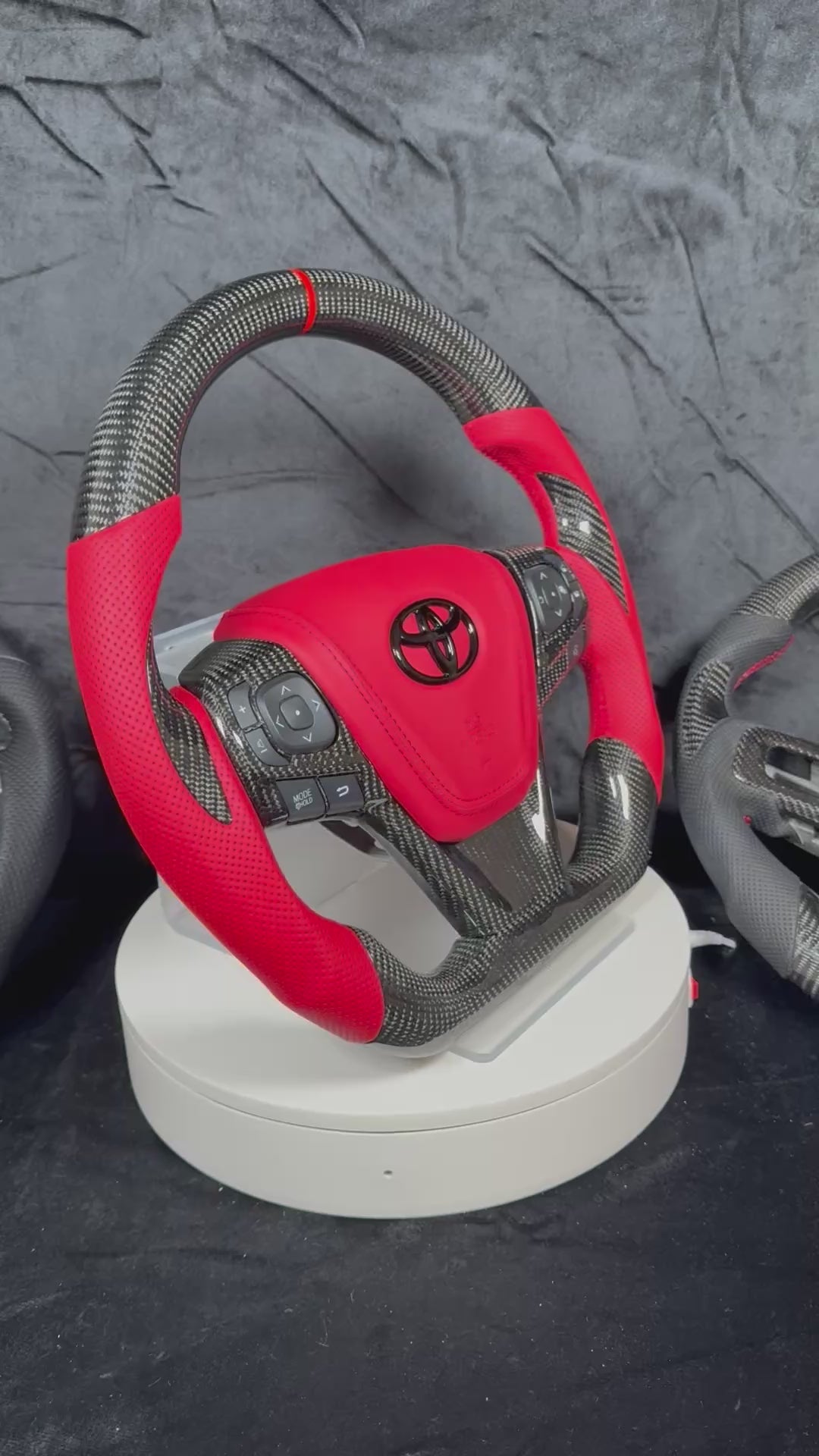 Flat bottom regular carbon red perforated leather red stitching red stripe + bezel + airbag cover
