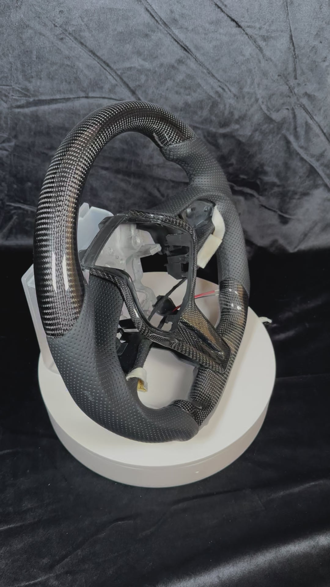 Flat bottom, Regular carbon, Perforated leather, Black stitching, Carbon bezel, Heated retain
