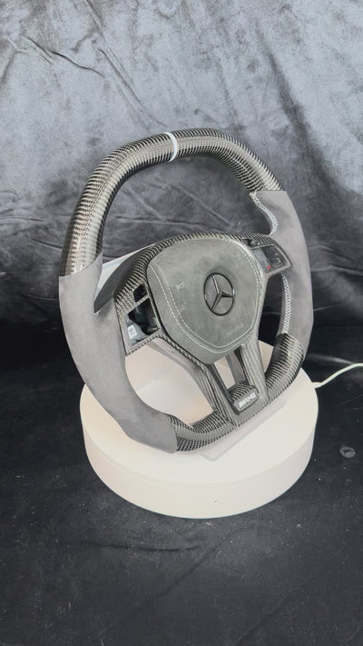 Flat bottom, Gloss carbon, Alcantara, White stitching, White stripe, Carbon bezel, Alcantara airbag cover