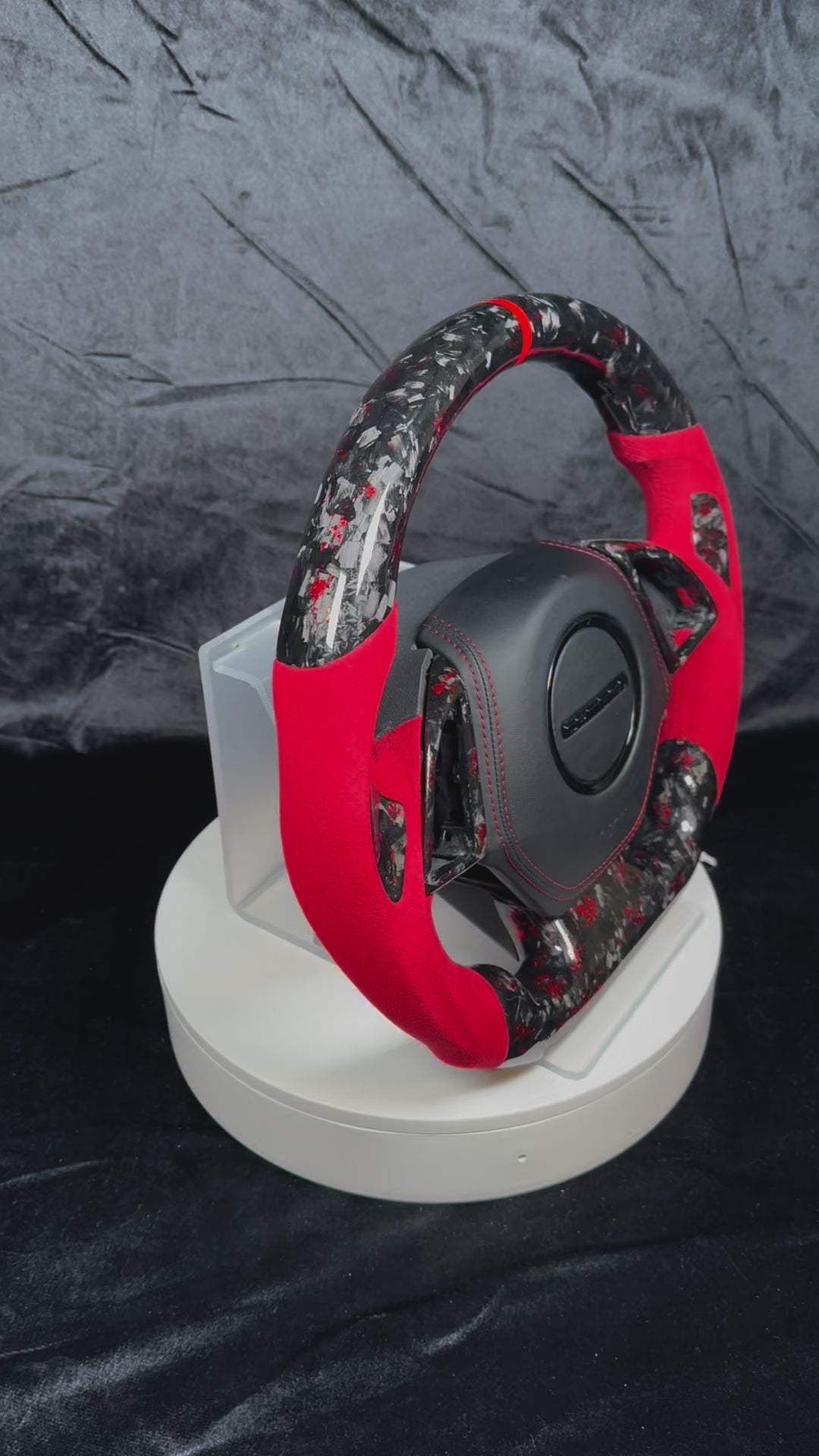 Flat bottom, Forged red carbon, Red Alcantara, Red stitching, Red stripe, Carbon bezel, Carbon inlay, Leather airbag cover