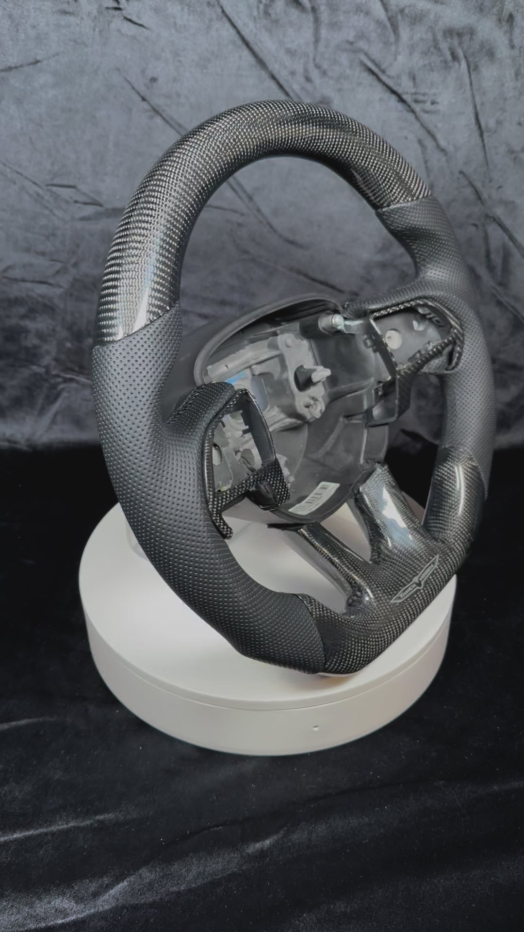 Flat bottom, Gloss carbon, Perforated leather, Black stitching, Carbon Bezel
