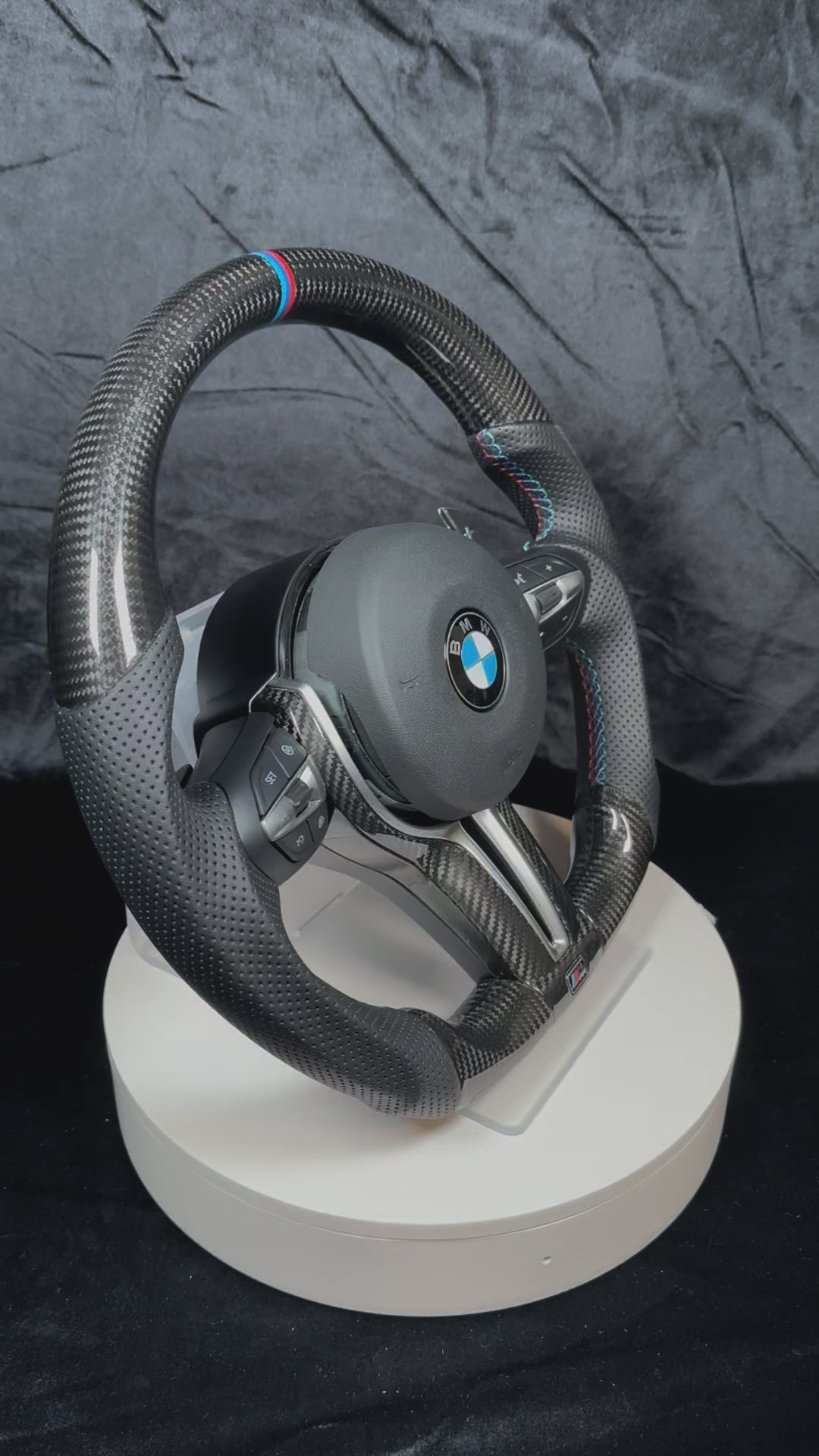 Full set Upgrade, Flat bottom, Regular Carbon, Perforated leather, M stitching, M stripe, Carbon bezel